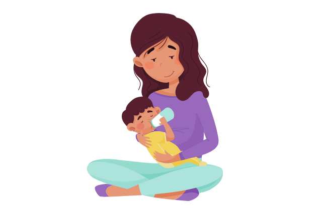 2- Try to feed him either with a bottle or breast whatever way he used to do it. You can pick the baby up in case of nursing. If you’re offering the bottle, be sure that your baby is in a semi-upright position, to prevent choking.